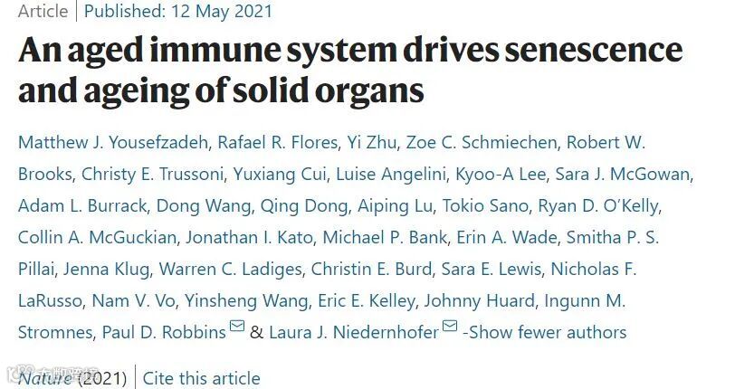 “值得注意的是,非淋巴器官也表现出衰老和损伤增加,这表明老化、衰老的免疫细胞会加速全身衰老。”研究人员在论文中强调。