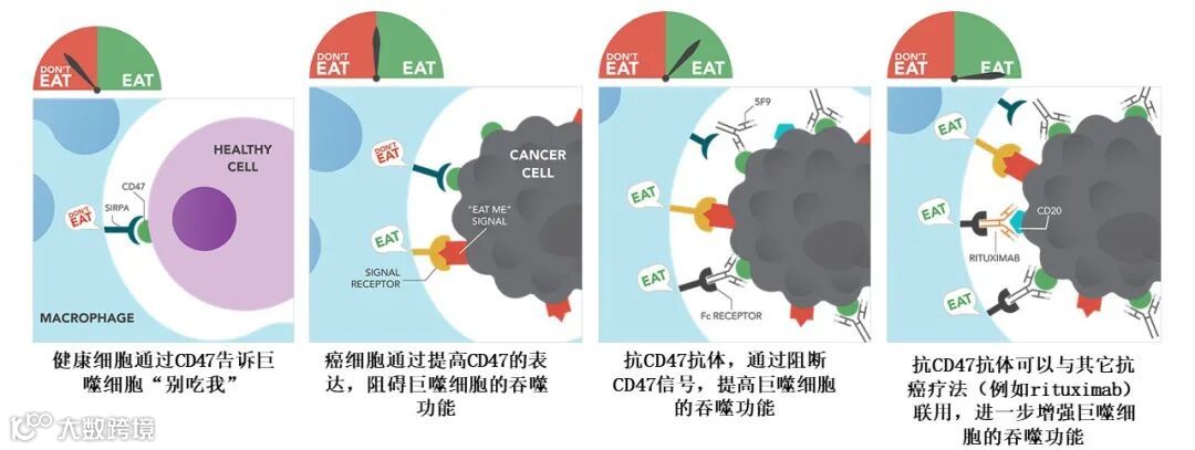 CD47是细胞表面表达的“别吃我”信号,通过与巨噬细胞表面的SIRPα受体结合,防止正常细胞被巨噬细胞吞噬。然而在多种癌症类型中,肿瘤细胞也会通过表达CD47防止它们被巨噬细胞吞噬。