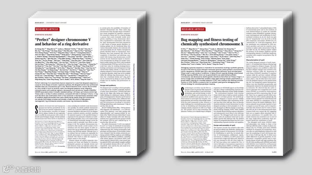 2017年3月10日,天津大学化工学院元英进教授领导的研发团队在《Science》期刊上发表两篇论文,成功实现了酵母5号和10号染色体的化学合成,在人工基因组化学再造方面取得了重大突破。团队解决了长染色体精准定制合成难题,并进一步提出了基因组重排精准控制方法。