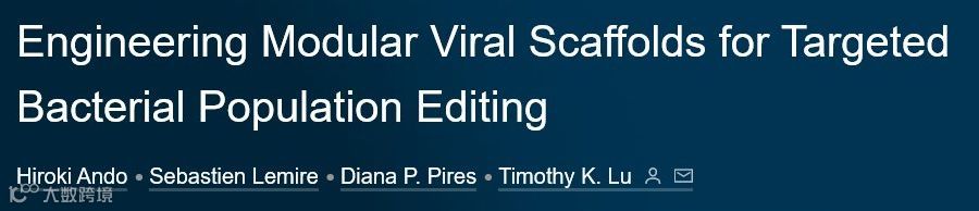 [3] lu. et al. (2019)Engineering Modular Viral Scaffolds for Targeted Bacterial Population Editing. Cell Systems. https://doi.org/10.1016/j.cels.2015.08.013