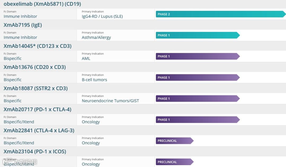 ▲Xencor的产品研发管线(图片来源:Xencor官网)