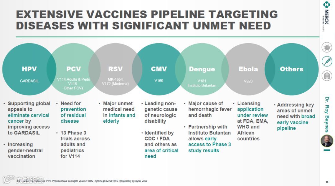 在疫苗研发领域,默沙东拥有广泛的疫苗研发管线,针对包括人乳头瘤病毒(HPV),和肺炎在内的多种具有重大未竟需求的疾病。