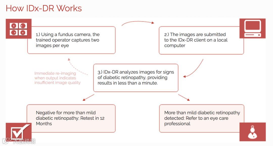 ▲今年4月,美国FDA批准了首款使用人工智能检测糖尿病患者视网膜病变的医疗设备IDx-DR(图片来源:IDx官方网站)