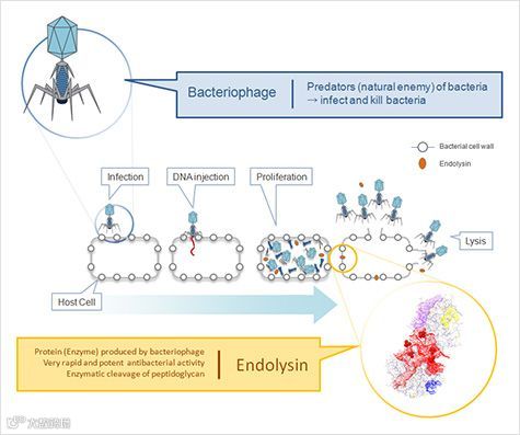 ▲细胞内溶素通过切割细菌细胞壁(肽聚糖层)来直接杀死细菌(图片来源:iNtRON官网)