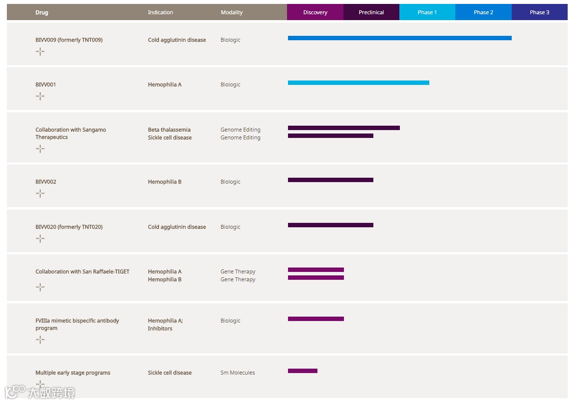 ▲Bioverativ的研发管线(图片来源:Bioverativ官方网站)
