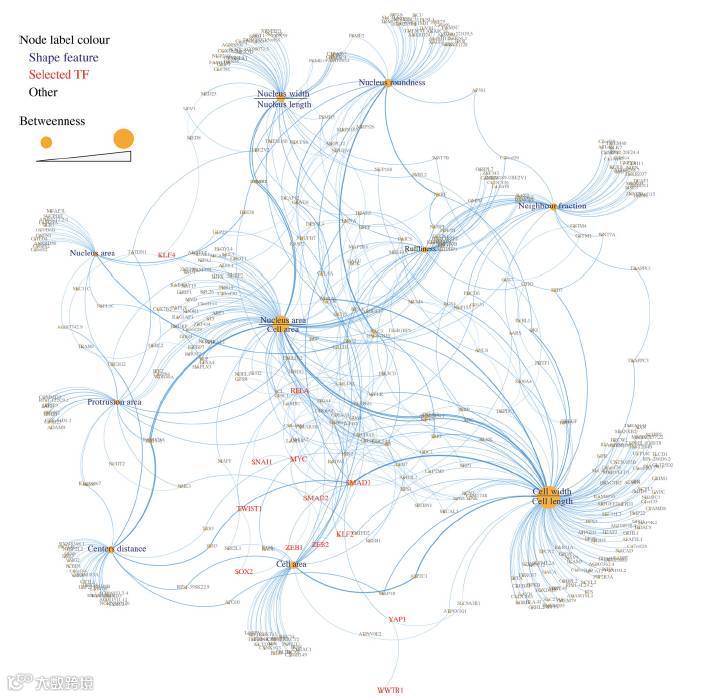 ▲研究人员绘制了详尽的细胞形状-基因网络图(图片来源:《Genome Research》)