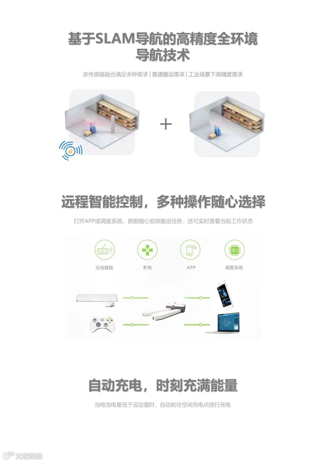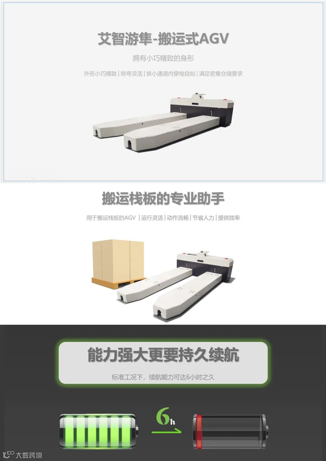 艾智机器人研发的小型搬运式AGV无人叉车产品,专为无人化操控、长