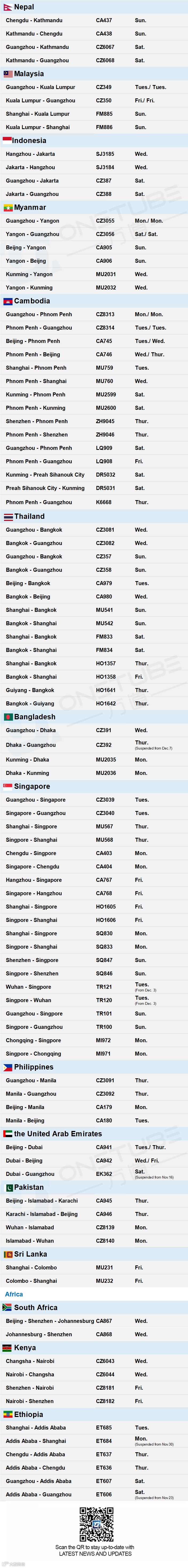 Full list of International Flights in/out China