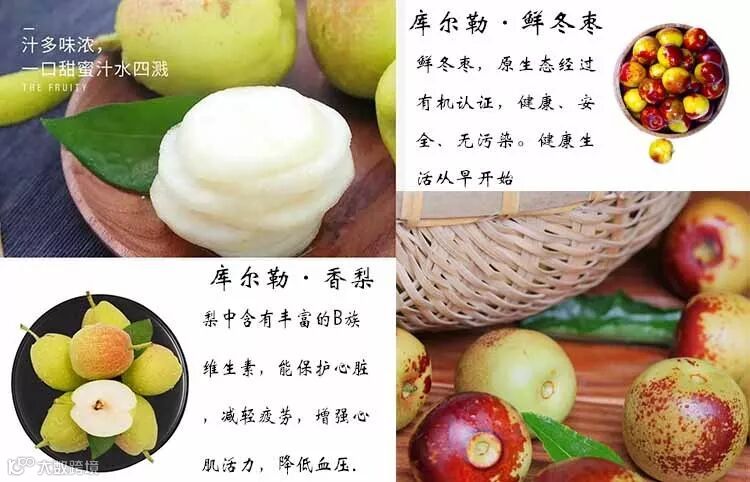 科学化验分析,库尔勒香梨营养价值高,可食部分达83.6%。每100克鲜果的可食部分含蛋白质0.1克,脂肪0.1克,碳水化合物6.7克,膳食纤维6.7克,热量28千卡,维生素C4.3毫克,钙22毫克,磷19毫克,铁1.2毫克,锌2.61毫克,钾79毫克,钠3.7毫克,镁8毫克,含糖量10%,酸0.03%,灰分0.12%。
