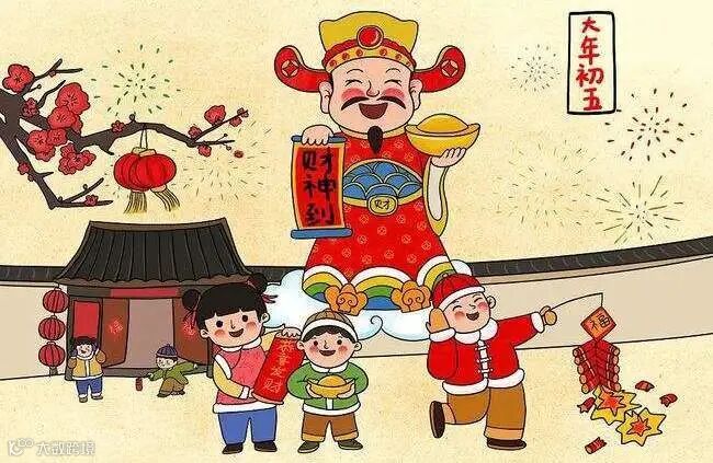大年初五迎财神这个习俗由来已久,民间习惯祭祀五路神,指东西南北中,意为出门五路,皆可得财。