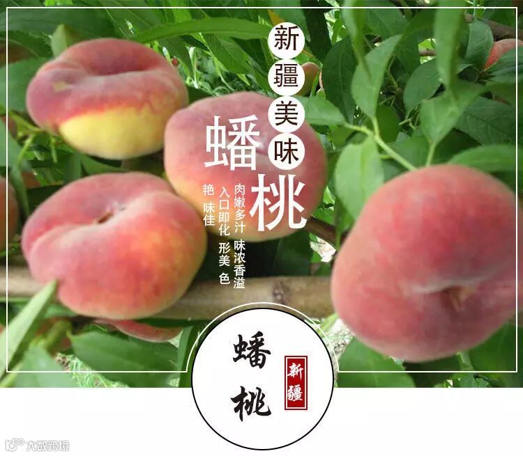 新疆是蟠桃的原产地,蟠桃在新疆、山东、河北、陕西、山西、甘肃等省份均有栽培,但从品质、色泽、口感、各种营养成分上比较,数新疆的蟠桃好。
