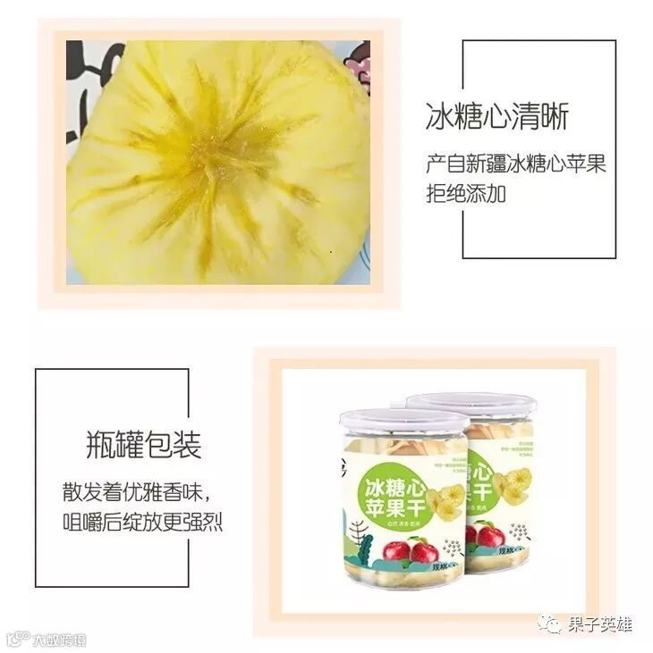 纯天然无添加,和冰糖心苹果一样好吃的冰糖心苹果干,香/脆/甜2罐只要49元哦,开罐即食