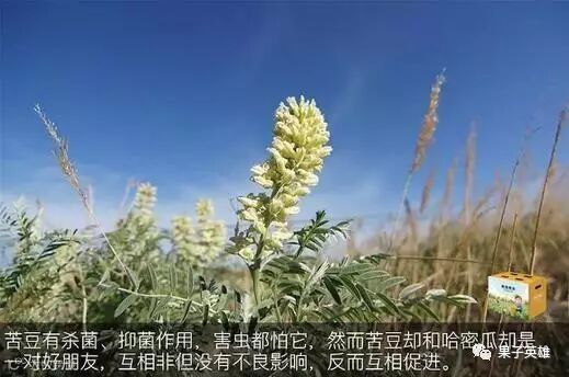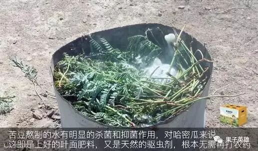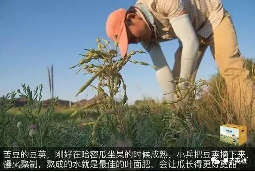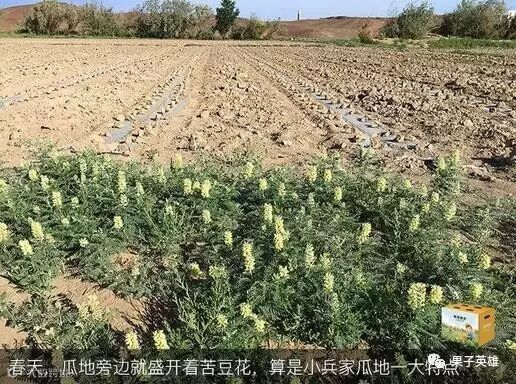 苦豆有杀菌、抑菌的作用,害虫都怕它,所以选择了苦豆做肥料。苦豆与蜜瓜互相促进,瓜地绝对能得到很好的自然保护,也正是这样,才会有纯天然、无污染的哈密瓜吃啊!