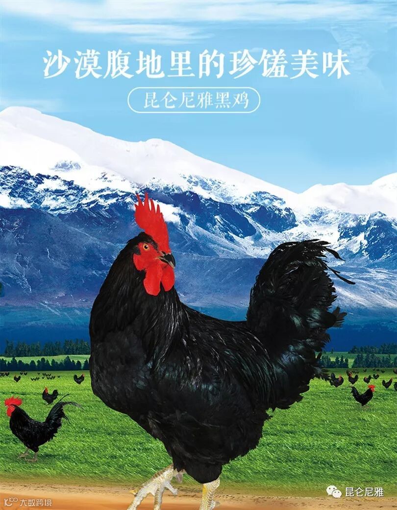 和田地区民丰县的“昆仑尼雅黑鸡”,近2千多年的历史过程中,无杂交、无串种,贵族血统,基因稳定,有高蛋白、低脂肪、低胆固醇,富含16种人体必需氨基酸成分,具有丰富养生和营养价值,因而自古“滋补胜甲鱼、美容赛珍珠”的美誉,是难得的绿色有机禽类食材和新疆南疆地区稀世禽种。