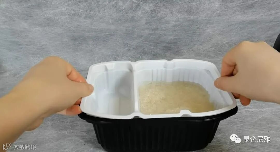 【打开米包,放入饭盒,加入水】