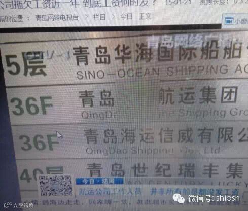 航运市场不好,航运企业难熬。1月21日,青岛电视台新闻节目《今日》报道了“山东青岛某航运公司拖欠工资近一年 小宋的18万哪去了”的报道,航运界网将节目的文字实录整理如下: