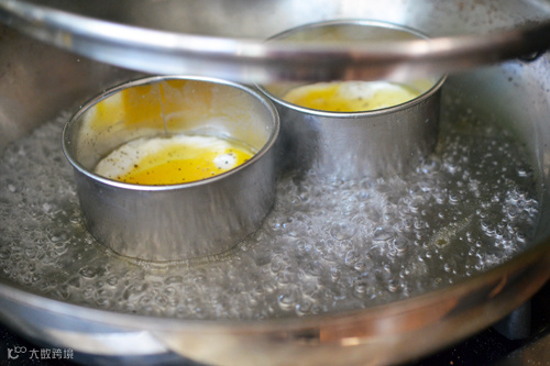将鸡蛋定型后在沸水中煮熟