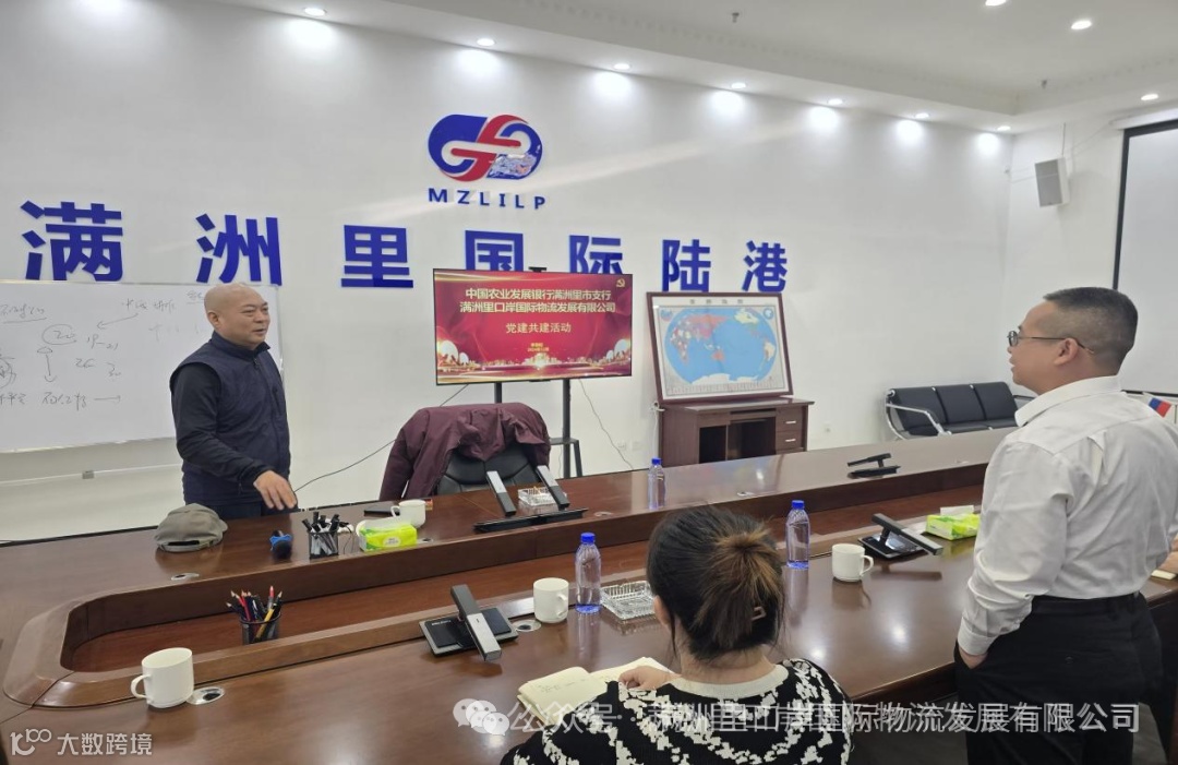 为了深化合作纽带,促进司行合作,2024年12月11日,满洲里口岸国际物流发展有限公司与中国农业发展银行满洲里分行共同开展党建共建活动。