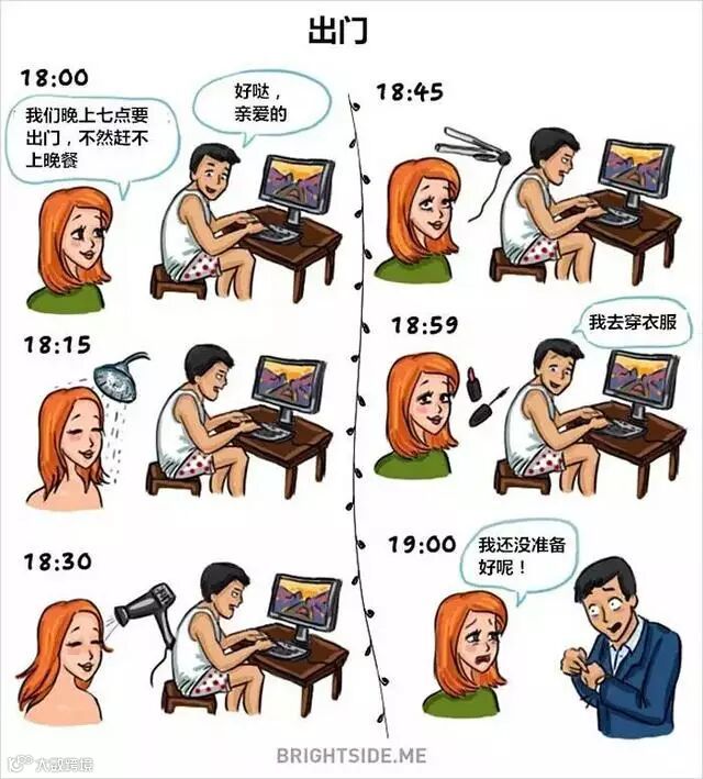 男人来自火星,女人来自金星,这可不是白说的。在许多方面,两性存在巨大的差异! 下面是艺术家用漫画创作的吐槽,大家看看说得在不在理: