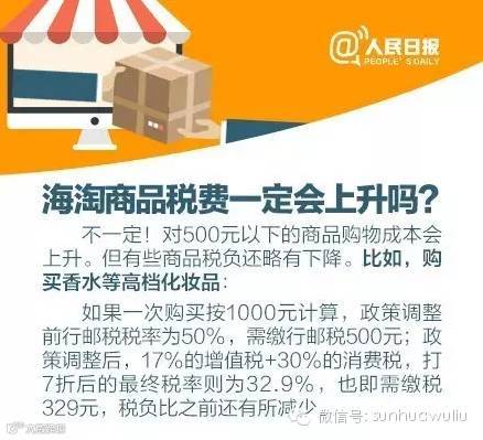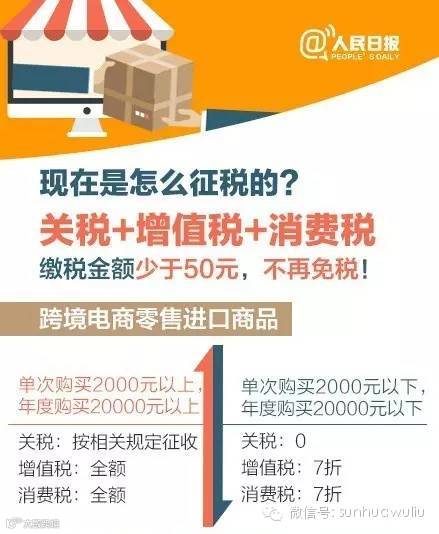自3月24日,三部委(财政部、海关总署、国家税务总局)联合发布《关于跨境电子商务零售进口税收政策的通知》(下称新税制),自4月8起实施。新税制实施后与买家利益相关的两个主要变化是:一、按照货物征收关税、增值税、消费税:关税暂设为0%,增值税、消费税按法定应纳税额的70%征收;二、单次交易免税额度限值2000元,个人年度交易限值免税额度为2万元。