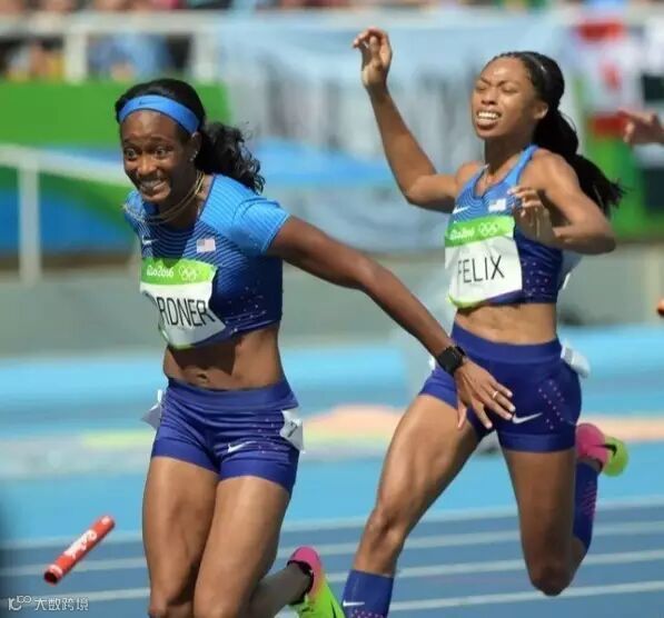 在女子4X100的另一组接力预赛,卫冕冠军美国队出场。头一棒美国队优势明显,第二棒菲利克斯依然领先。到了二三棒交接时,出事儿了。菲利克斯递了半天,没把接力棒交到加德纳手里,最后朝加德纳手里一扔,接力棒掉落到地上。菲利克斯和加德纳气的吵了起来。一次低级的掉棒失误,最终美国队未能晋级决赛。