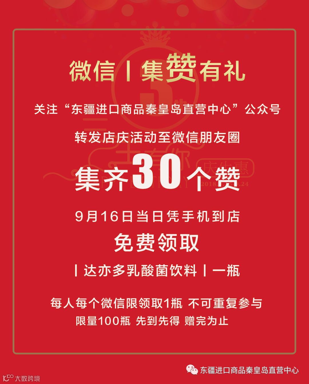 值此中秋佳节来临之际,我们即将迎来东疆进口商品秦皇岛直营中心的第三个生日!在三周年店庆到来的时刻,我们为广大新老顾客准备了多重店庆优惠。真诚的邀请您参加我们的三周年店庆活动。