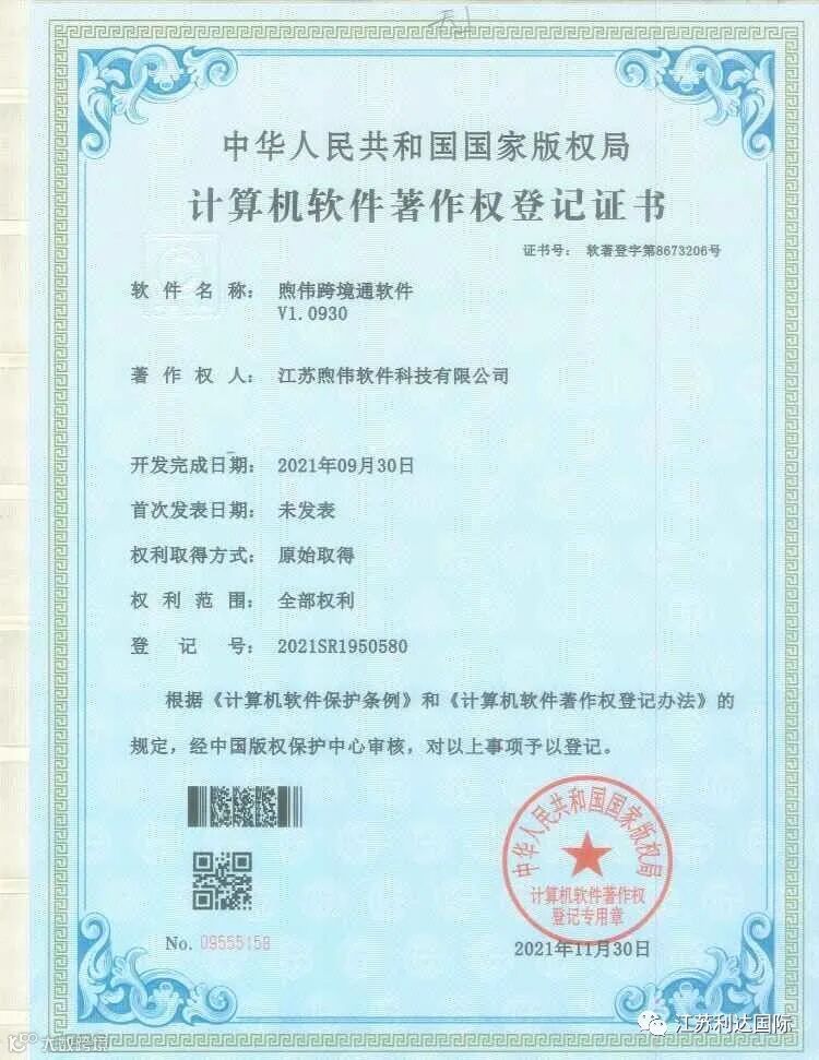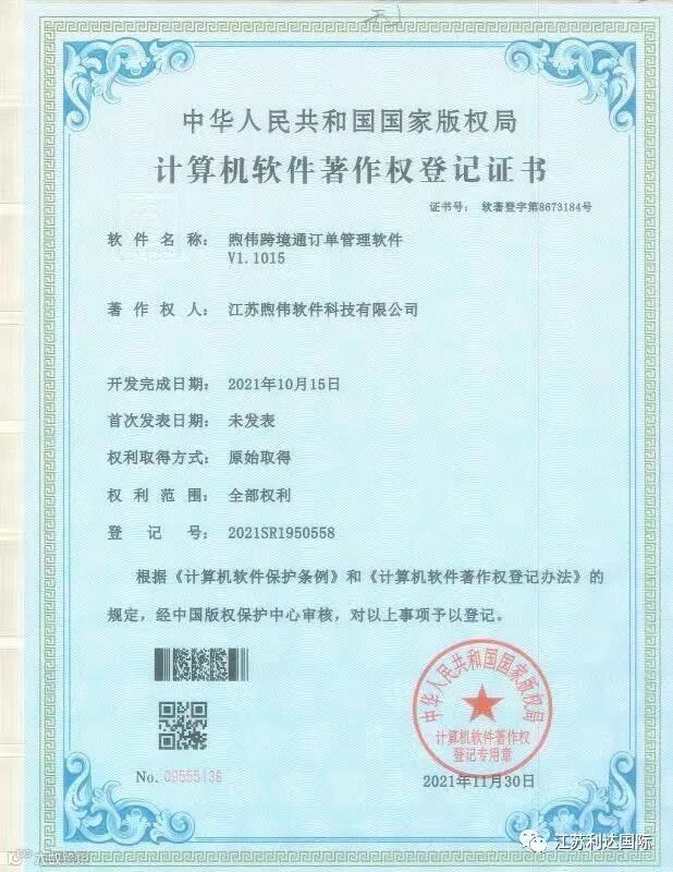 利达国际信息技术部成功研发“加工贸易E账辅助平台”、“煦伟TMS云平台”,并成功申请软件著作权。