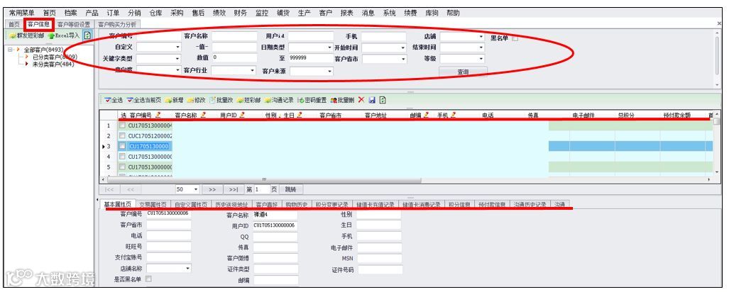 CRM将“丰收蟹庄”全部客户数据存储在系统中,包括客户姓名、收货人、客户ID、性别、生日、客户省市、客户地址、手机、客户喜好、购物历史等详细信息。这些数据成为会员数据分析的基础和依据。