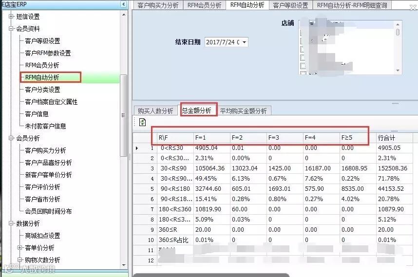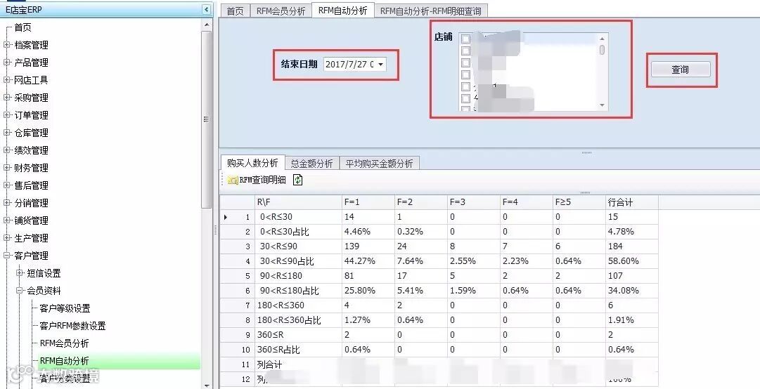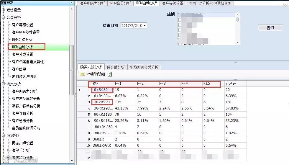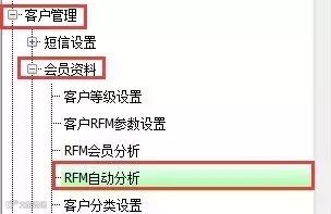登录ERP客户端——点击客户管理——会员资料——RFM自动分析——选择时间——选择店铺——点击查询