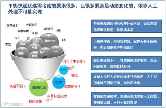 据调查,电商卖家的快递和逆向快递(超区重投、退换货)产生的成本占比高达12%-15%,客户投诉率高达5%,严重影响卖家的DSR评分,如何能够优化快递策略,?平衡成本和时效,成为了困扰众多卖家新难题。