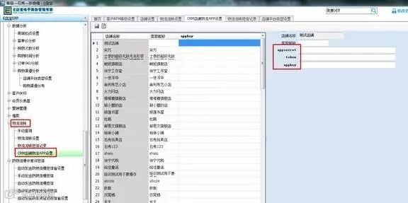 (2)在到物流流转-CRM店铺物流APP设置界面,填写店铺的app,sercter,token这三段值,其中,app, sercter这两段值是固定的,token就是在后台,我的服务-我订购的服务里-点开E店宝,那段值