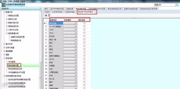 (4)最后在到物流流转设置界面,选择店铺,选择刚才设置好的模板,把是否启用打钩,保存。