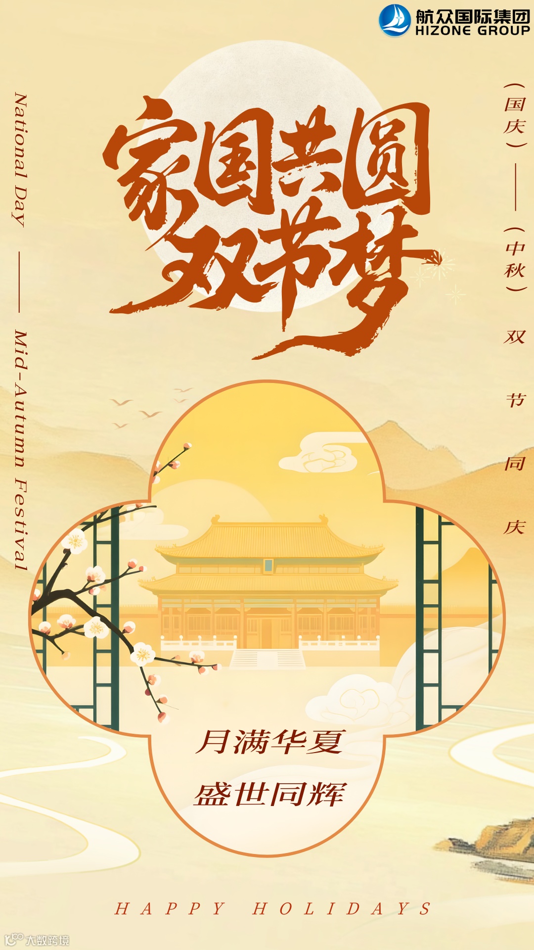 当金秋的桂香遇见飘扬的五星红旗,我们迎来了新中国成立76周年与中秋佳节的双重喜庆。在这万家团圆、举国欢庆的时刻,航众国际集团谨向全体员工、客户及社会各界朋友致以最诚挚的节日问候!
