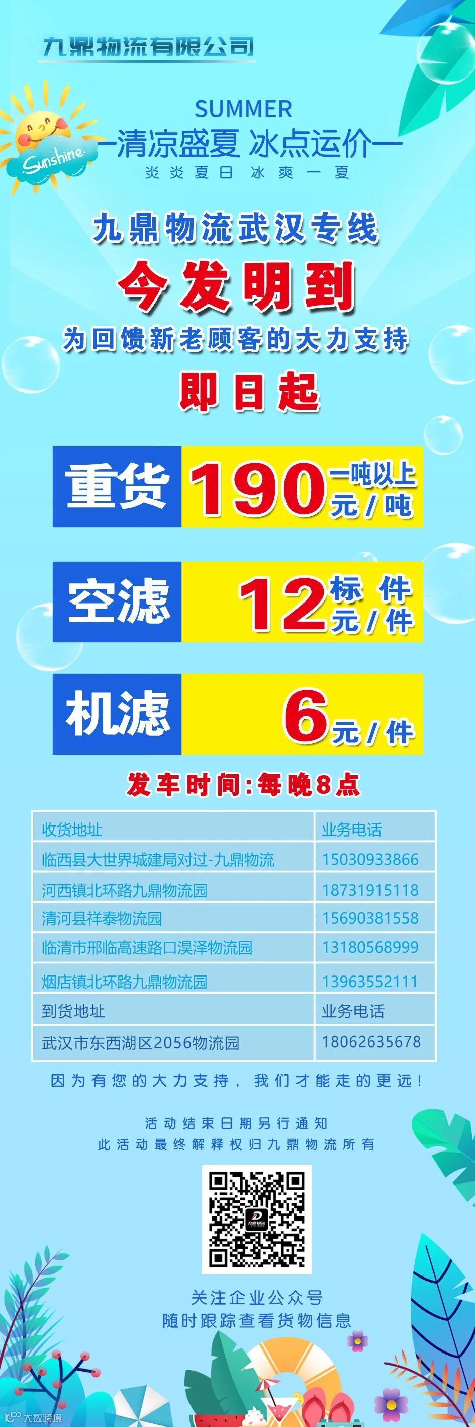 导读:九鼎物流武汉专线盛夏重磅回馈!