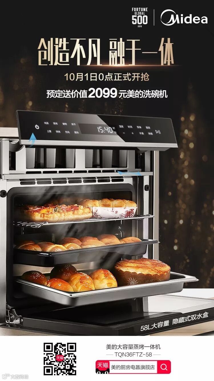 贴心的厨电,给家人带来最细致的呵护。美的新品TQN36FTZ-58侯爵蒸烤一体机不仅具备58L大容量蒸烤一体功能,大容量的蒸烤一体机更可放置你所需要的多种食物,可以一边烘烤一边注入水蒸汽,使食物口感更鲜嫩味道更鲜美;隐藏式双水盒设计,左右双水盒,净废水分离,确保健康烹饪,还有比这更令人幸福的事情吗?