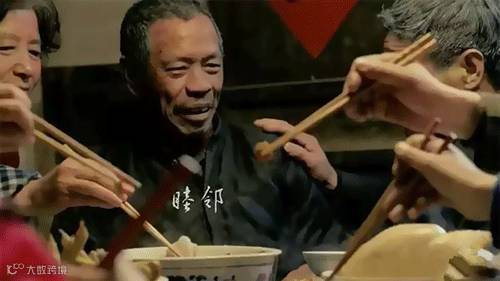 老人通过筷子尝到了儿孙满堂的幸福滋味。