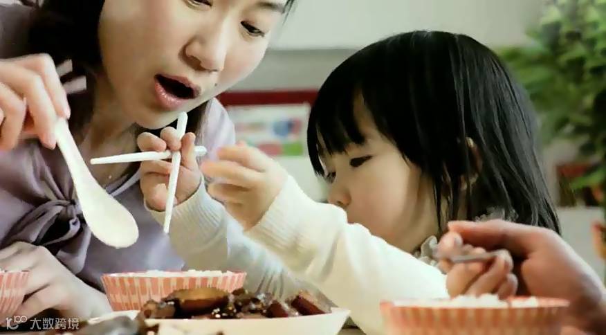 小孩通过筷子第一次尝到人生的酸甜苦辣。