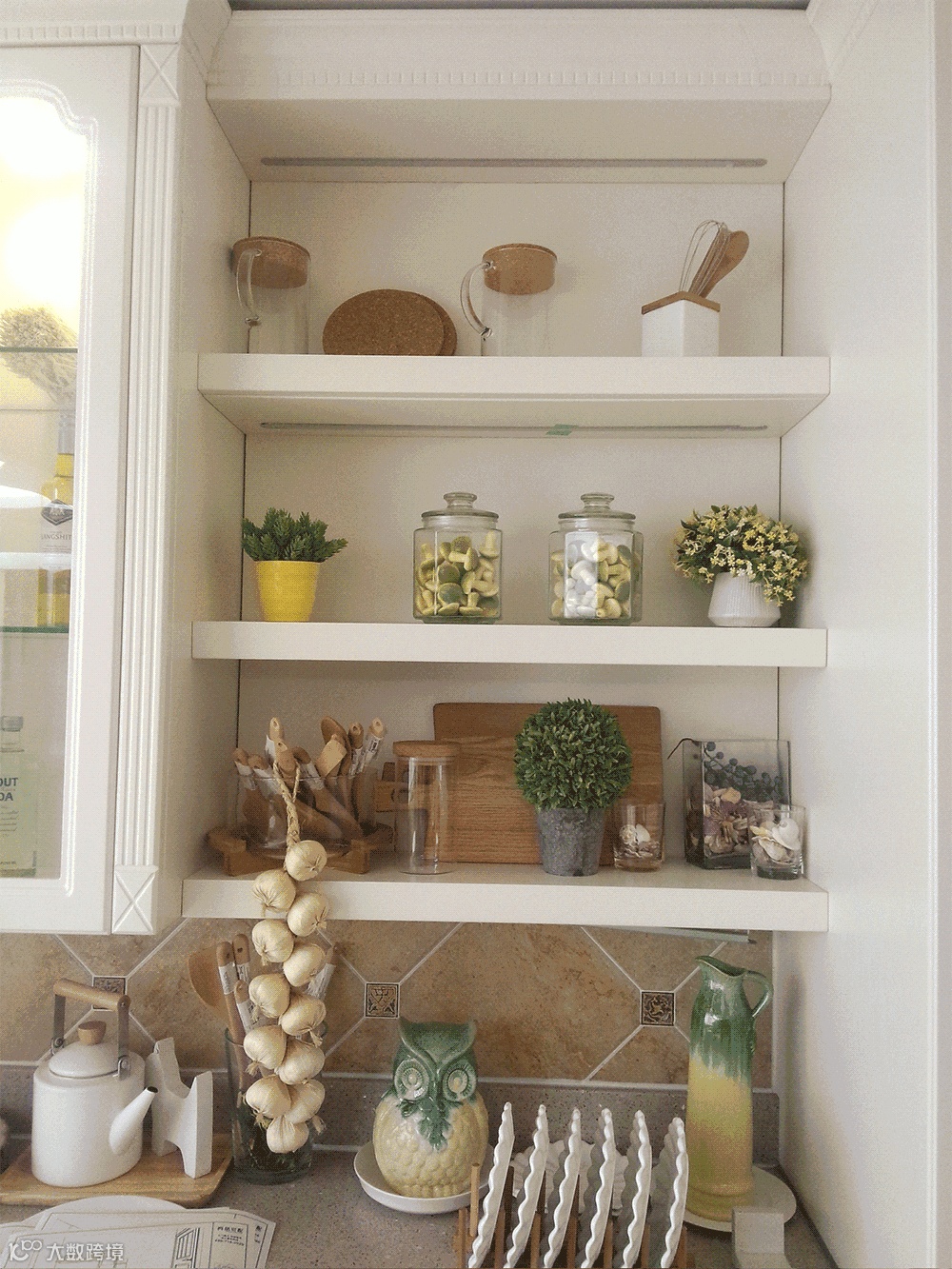利用橱柜、搁板等充分利用空间,让收纳足够大。