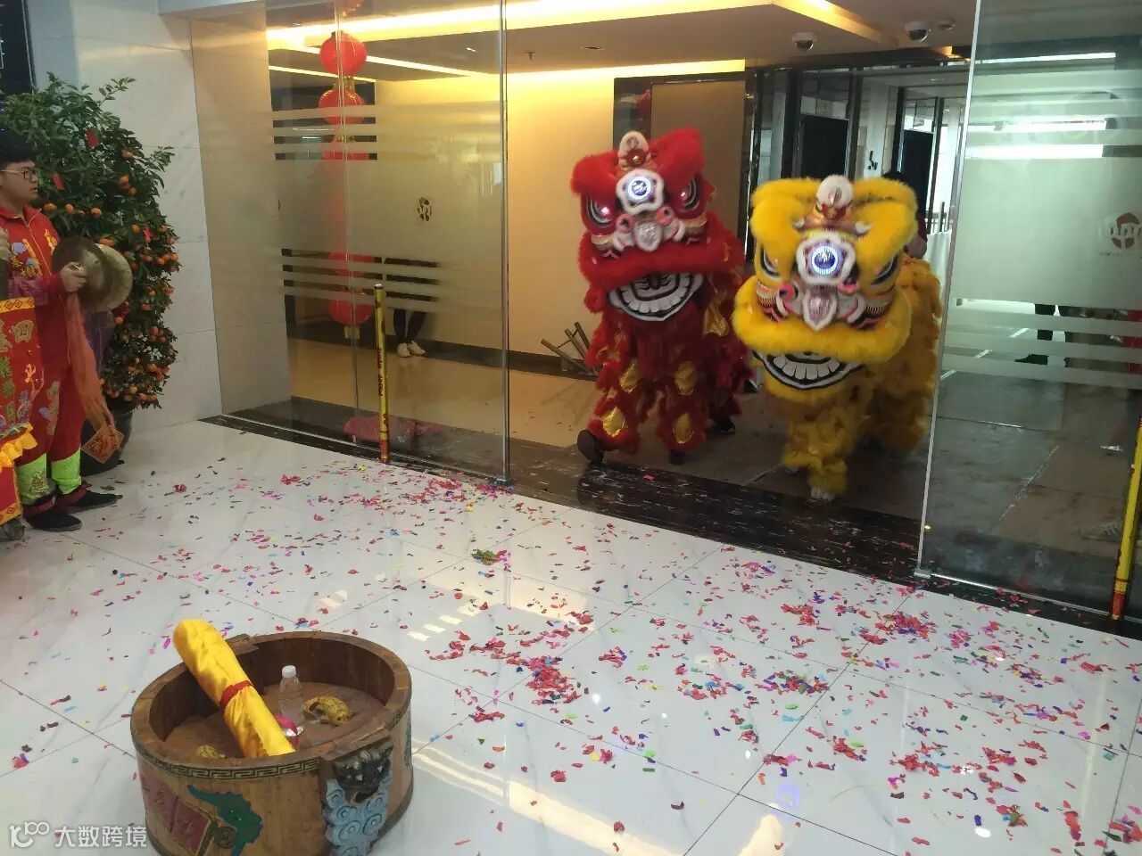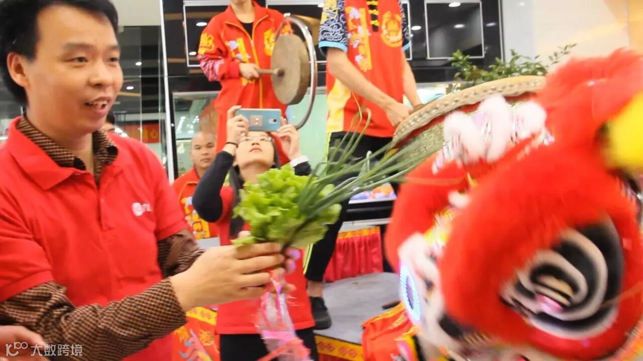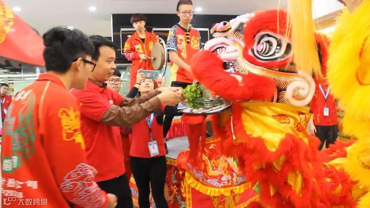 原来是公司请来了醒狮队伍,在开工的第一天,为大家擂起新春的战鼓!醒狮前五分钟,公司各部门经理已在门口列队迎接。早上十点,九鼎电商初八开工仪式,正式开始!