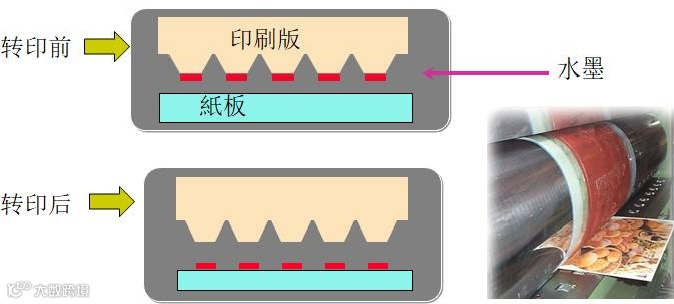 印刷机是利用橡胶辊(均墨辊)将油墨槽中油墨传递至印刷滚筒上的印版上,将所需的文字或图案及信息印刷至纸箱表面