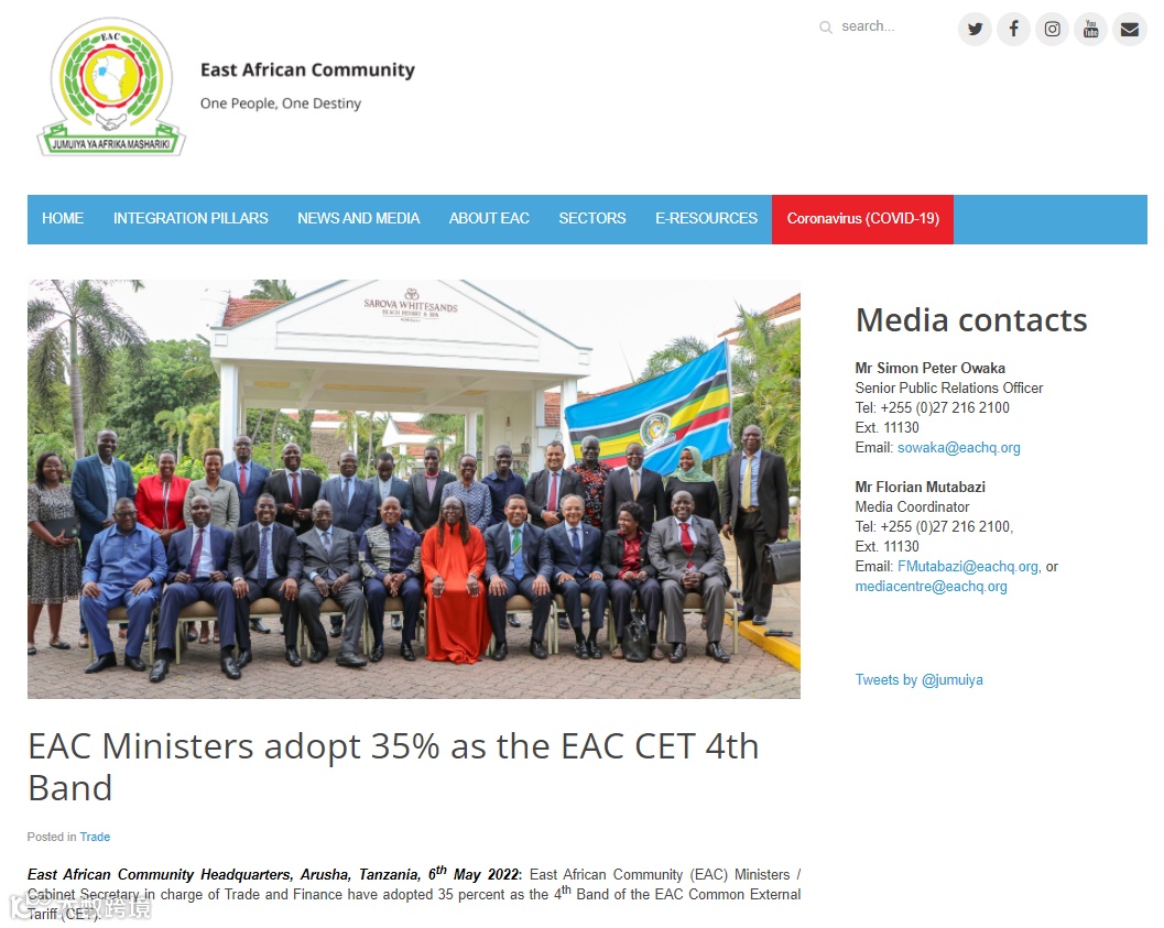 东非共同体秘书长Peter Mathuki认为CET是关税联盟支柱下的关键工具之一,通过统一对待从第三方进口的商品,证明了区域一体化的合理性。