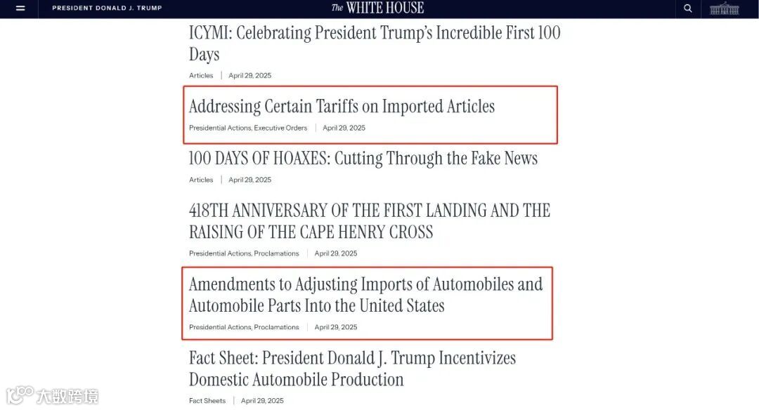 当地时间4月29日,特朗普签署最新行政命令,宣布取消叠加关税,进而大幅调低汽车及零部件产品的进口关税。