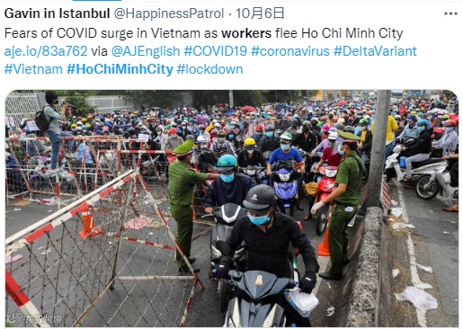 9月25日,越南的防疫措施以“哪里发生疫情就在哪里彻底处理”为方针,逐步调整到新阶段防疫战略。胡志明市的大部分限制也于10月1日被取消。
