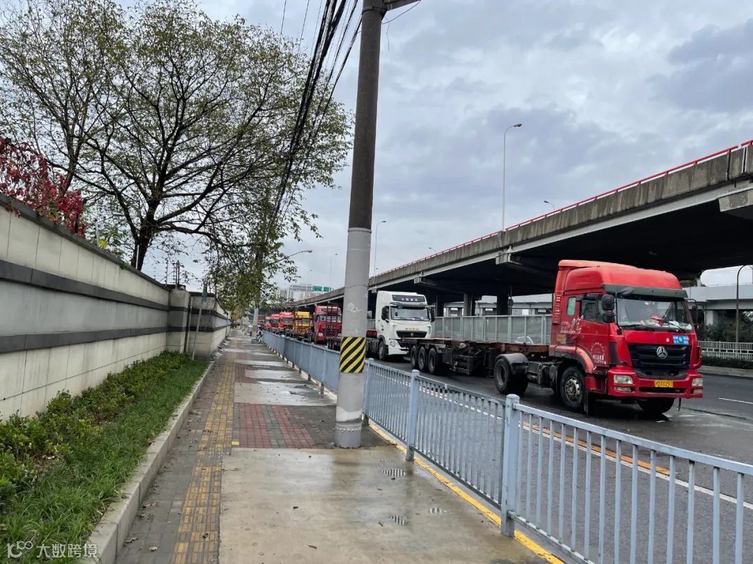 近日,上港集团张华浜码头门口,一位集卡司表示:“停在这儿的集卡,都是在排队等接单。”
