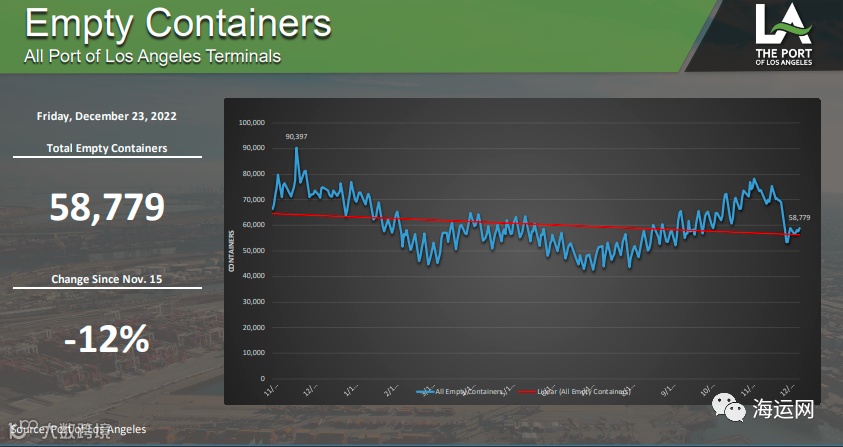 美线专家罗杰表示,“海外港口,比如美国的洛杉矶港,空箱数量也属于历史高位。其他大码头像纽约港,休斯顿港也面临同样问题,码头正在增加摆放空箱的区域。不过,截至目前空箱数量高位的情况还没有严重影响到还空箱的运作。”
