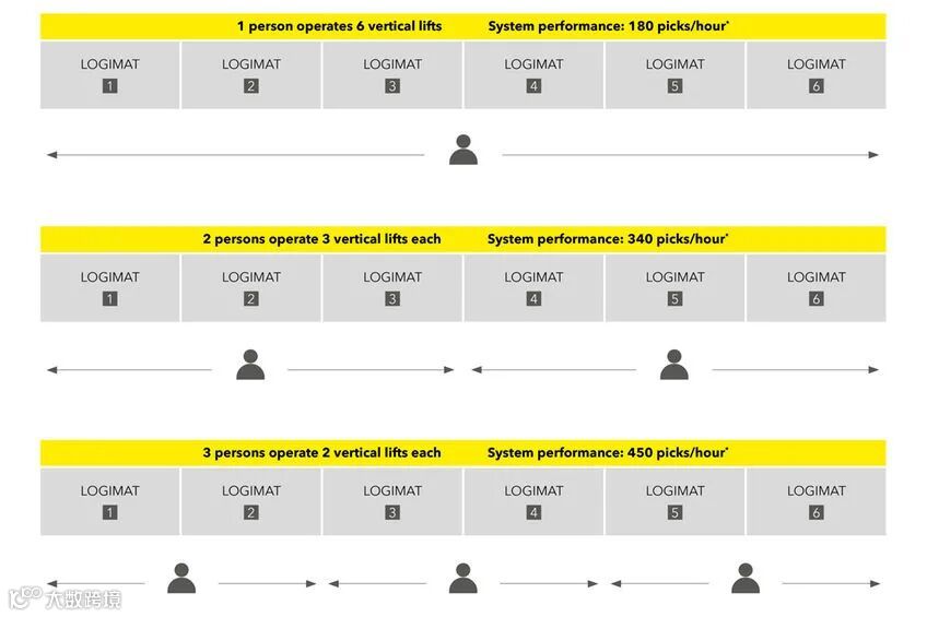 SSI LOGIMAT® 应用于自动化操作,系统性能可透过设备和操作人员的数量随时灵活地适应订单情况。