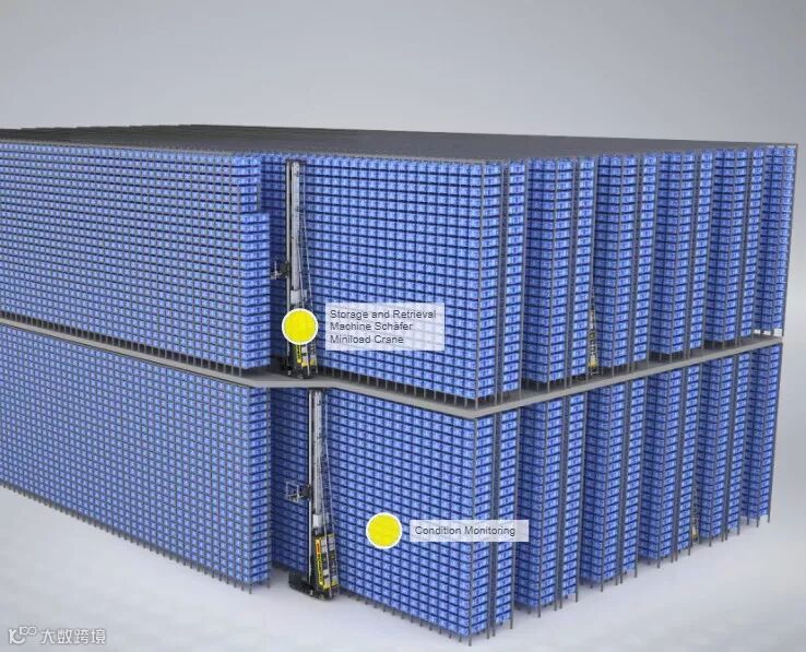 所有存取系统的行程和升降机驱动电机和变速箱的状态监控共执行42个舍弗勒SmartCheck设备。