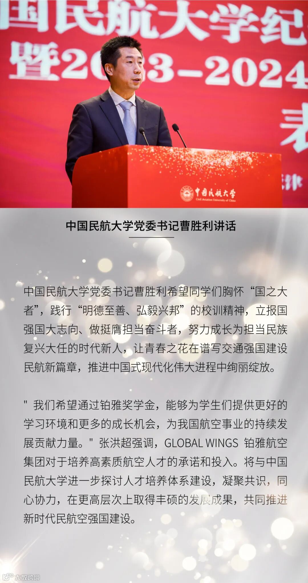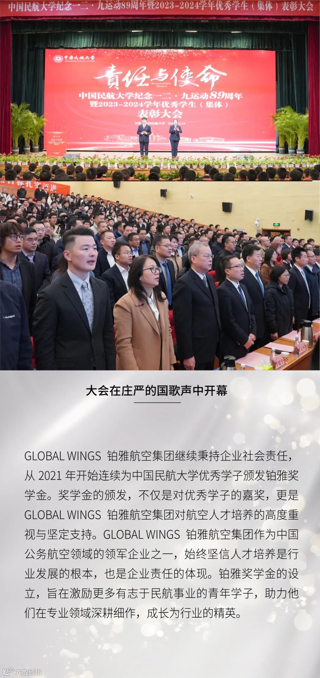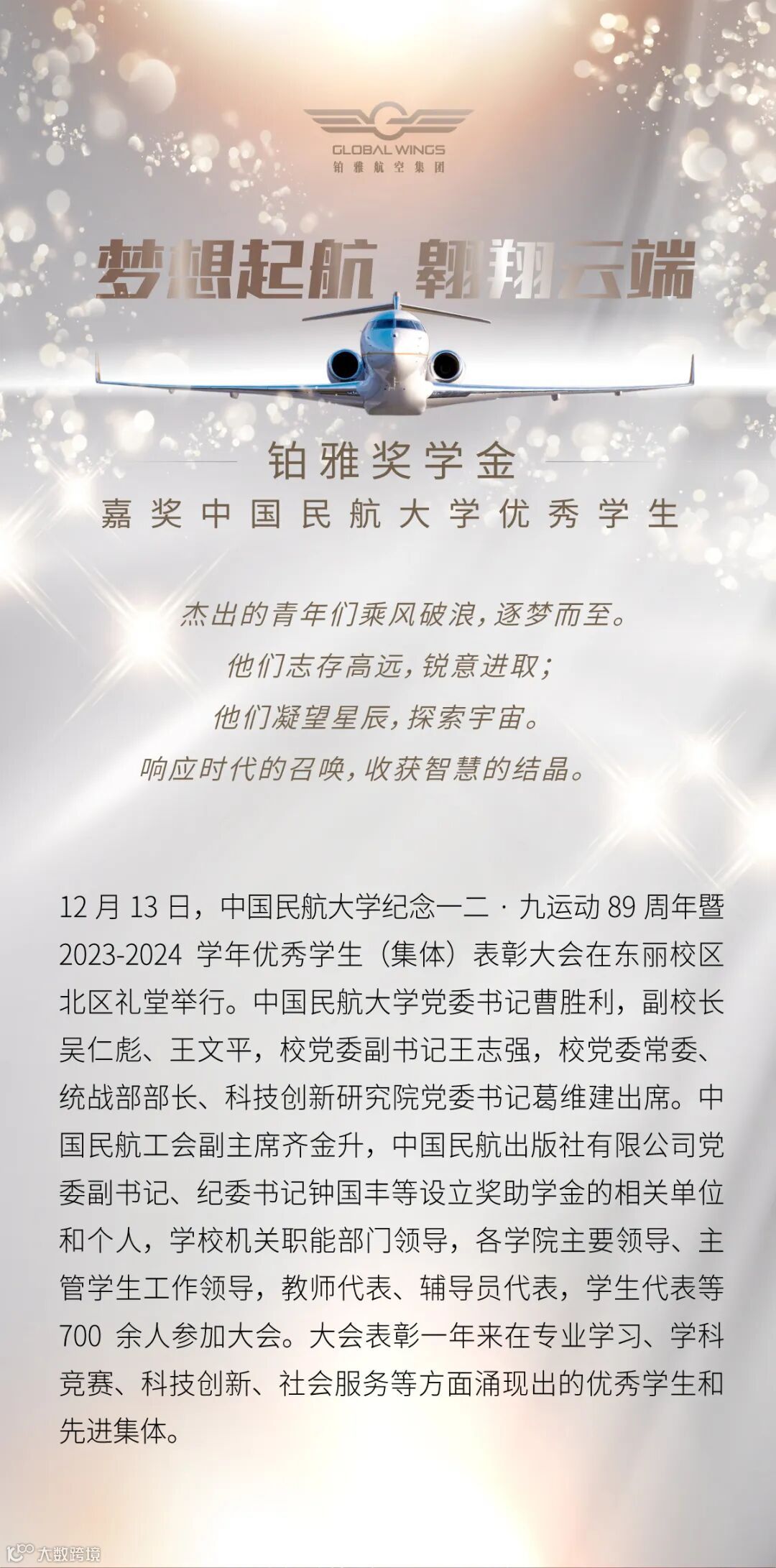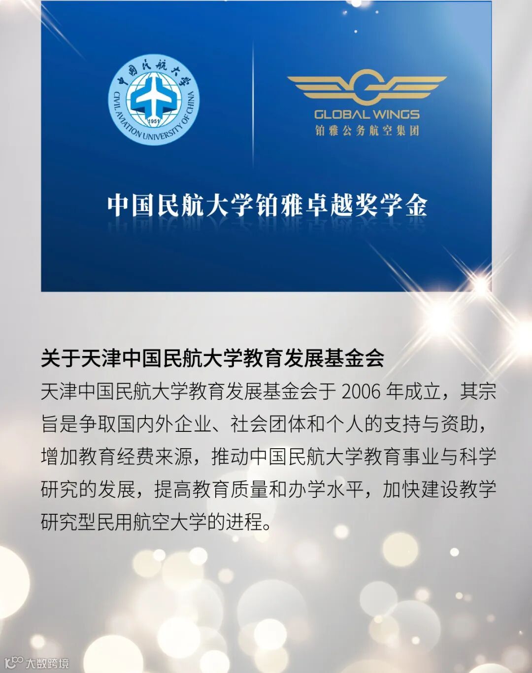 GLOBAL WINGS铂雅航空集团在中国民航大学设立奖学金