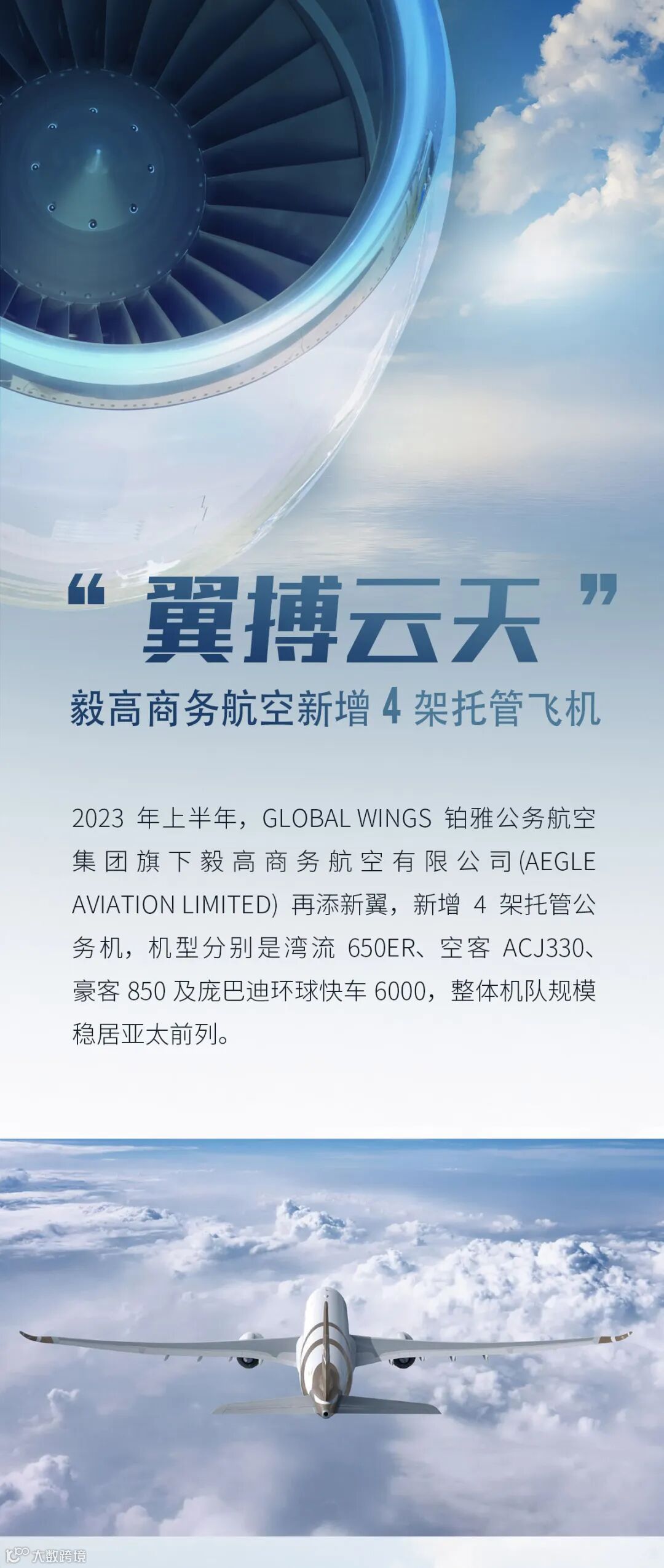 铂雅公务航空集团并购欧洲/香港Aegle毅高公务航空,同时引进世袭1000E及庞巴迪Global 6000超大型超远程公务机