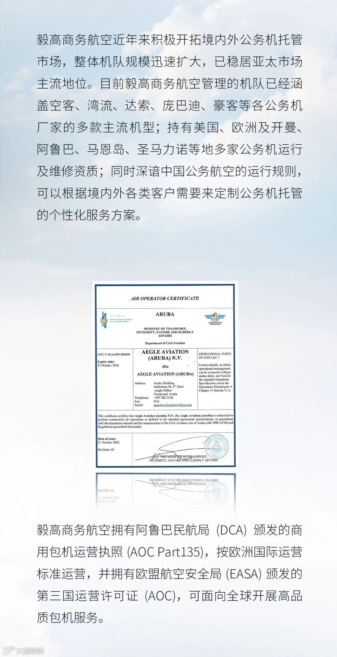 AEGLE毅高商务航空顺利获得国际公务机协会(IBAC)颁发的公务机国际运行标准(IS-BAO)第三阶段认证证书